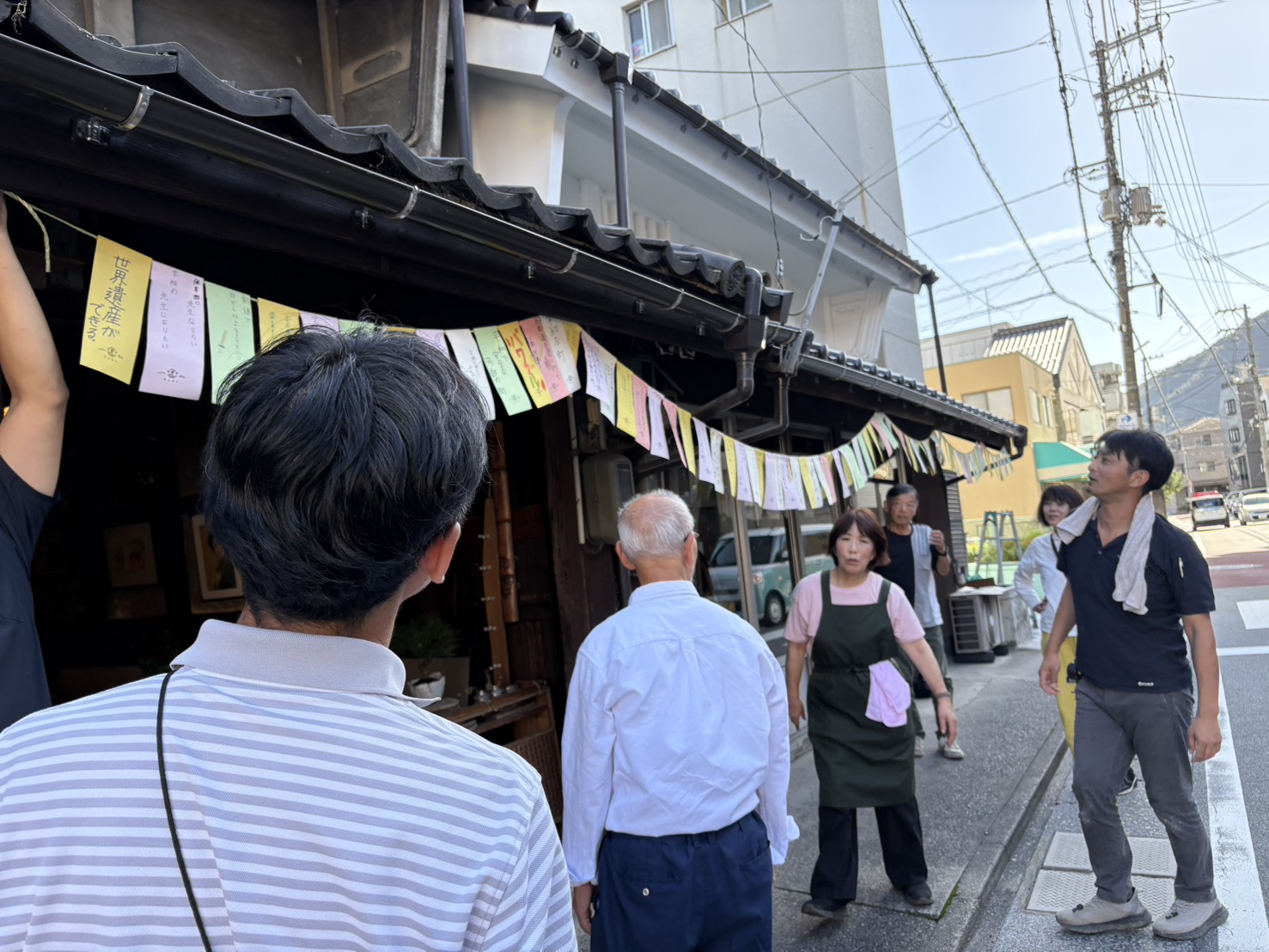 今日は、可部夢街道沿いの「きよかわの家」を中心に、たくさんの夢が飾られましたよ。可部夢街道まつりのイベントの一環です。「日本一夢が集まる街道にプロジェクト」で、小学生から大人までのたくさんの夢が書かれた短冊を実行委員会メンバーがロープにつけました。