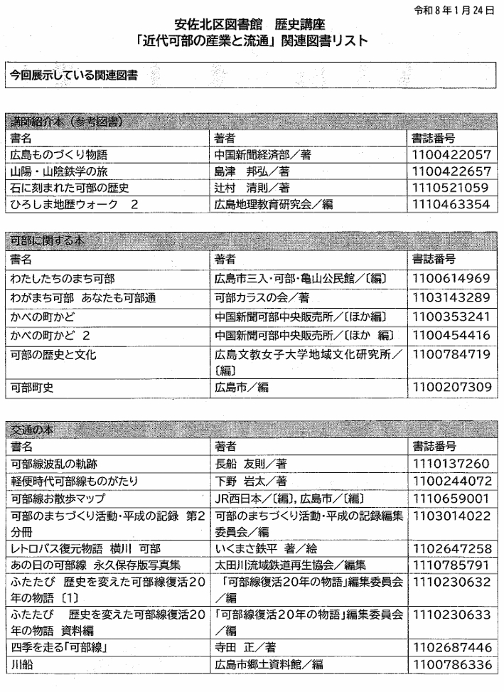 こんにちは。カベルモです。先日(1月24日)、安佐北区図書館の歴史講座に参加してきました。