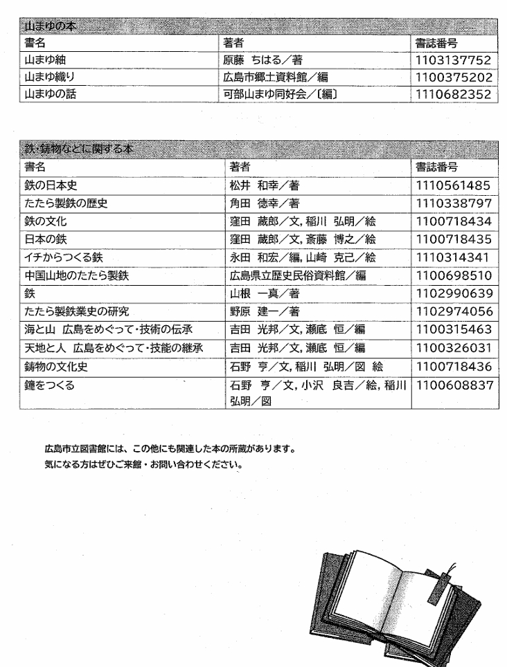 「近代可部の産業と流通」のテーマで広島市郷土資料館の玉置和弘氏の講演でした。主に江戸時代から大正時代にかけての可部の産業、山繭織り、鋳物、舟運業について初めて知ることがたくさんありました。可部の産業に関する本もこんなにたくさんあるのですね。