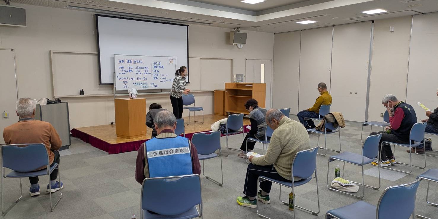 可部学区公衆衛生協議会主催で、11月30日に大瀬戸まり子指導士を講師に健康教室が開催されました。日々、少しずつでも意識的に身体を動かして健康維持を目指しましょう。