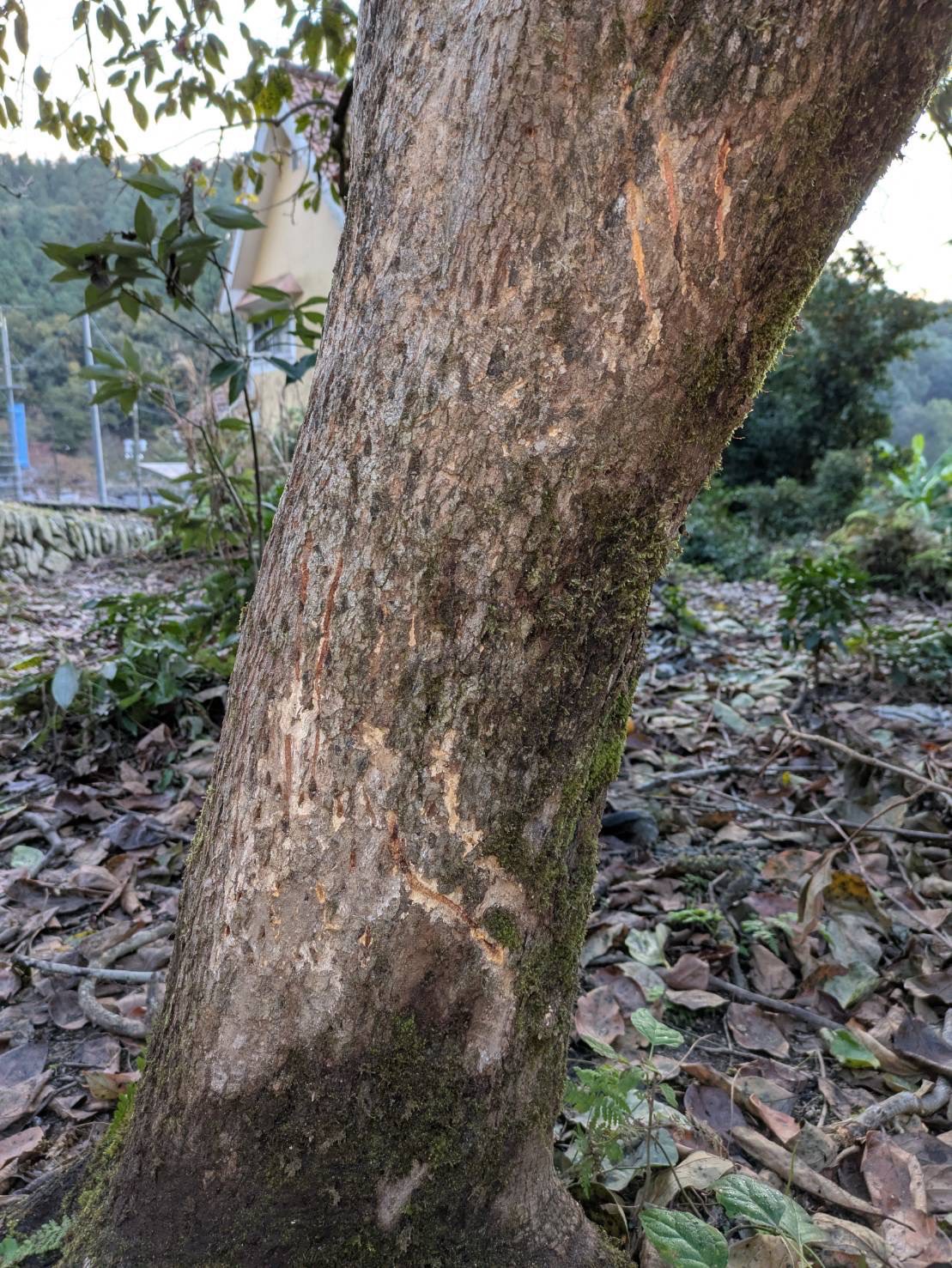 写真は綾ケ谷のクマの爪跡です。綾ケ谷公民館より600m西綾ケ谷方面に寄ったところだそうです。ご注意ください。