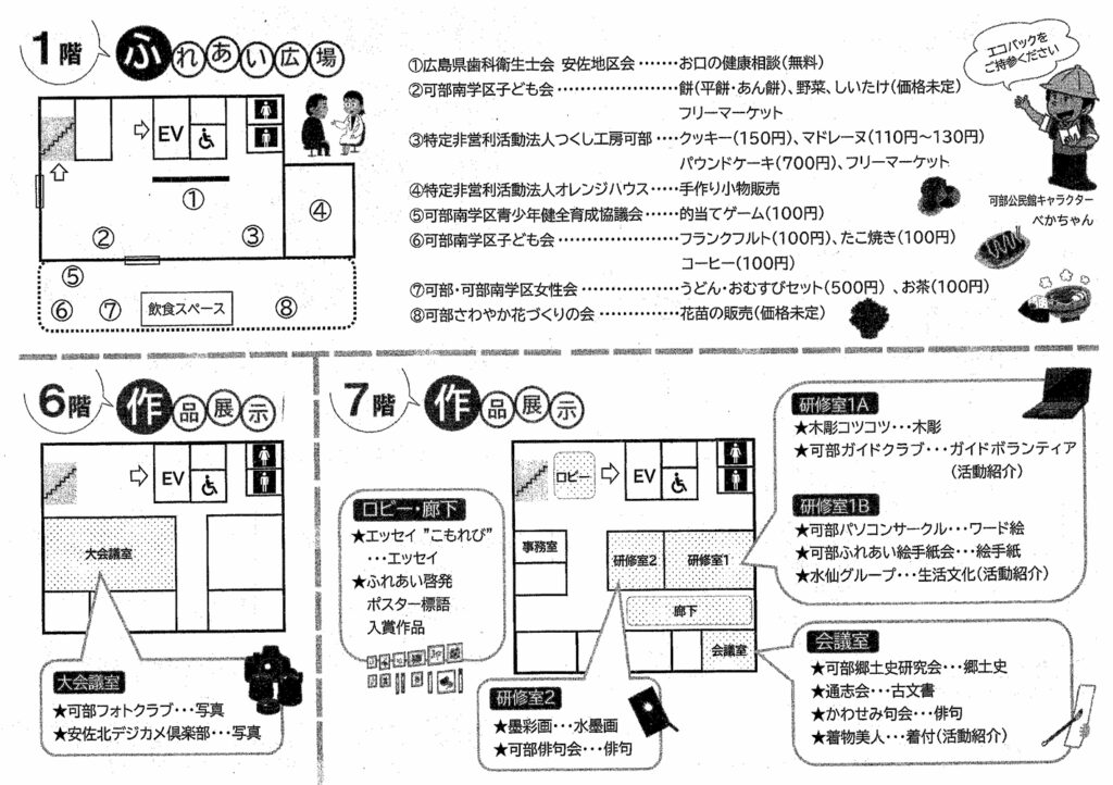 こんにちは。カベルモです。急に冷え込んだと思ったら、今日はとっても良いお天気となりました。可部夢街道まつりが終わったばかりですが、次は「可部公民館まつり」ですよ。可部の皆様、どうぞ足をお運びください。