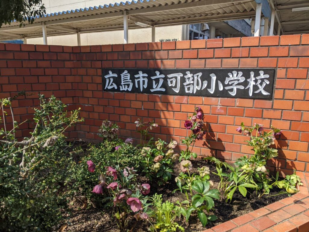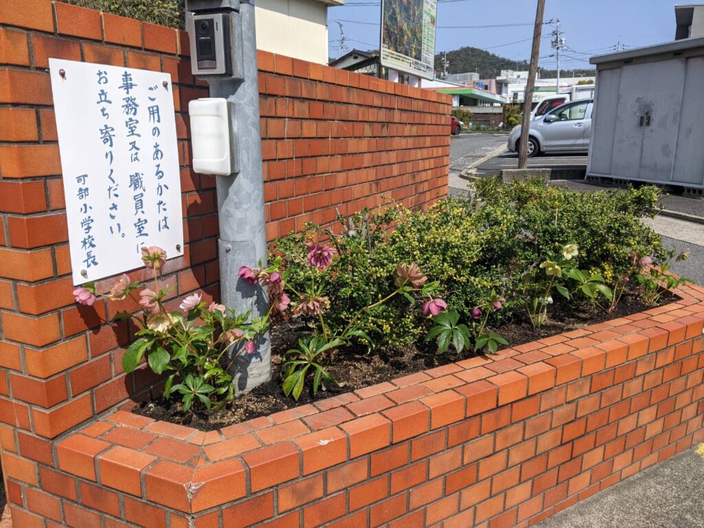 先日、女性会の皆さんのご尽力で、可部小学校の校門前の花壇にクリスマスローズと可愛い小花が植えられました。この花々は新学期から可部小の子どもたちを温かく見守ってくれますね。また、8日に入学式を迎える新一年生をお祝いしてくれることでしょう。