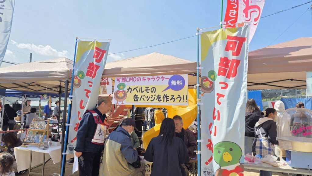 さて、3月20日(金・祝)、可部第五公園で開催された「ハンドメイドマルシェ」に可部LMOは初出店してきました。カベルモの缶バッジを作ってもらうお店です。たくさんの皆さんがカベルモの缶バッジ作りを体験してくださいました。今後ともかわいいカベルモをどうぞよろしくお願いします。