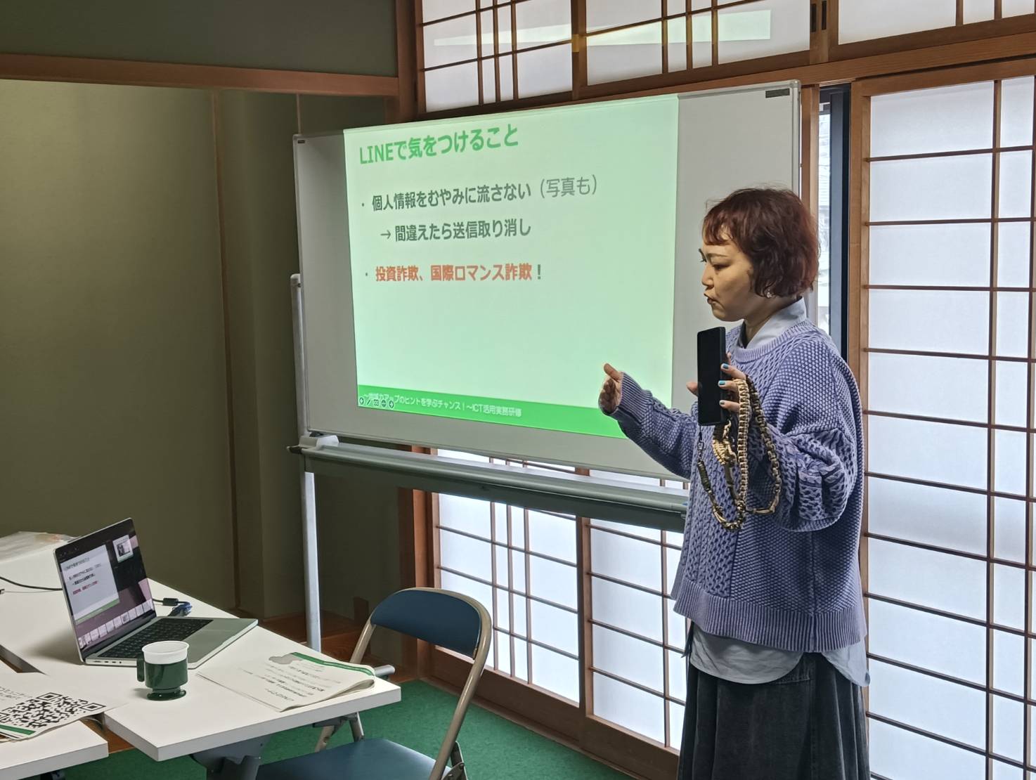 本日、可部LMOの主催で「初級LINE講座」を開催しました。講師はカラフルブリック(株)代表 島原智子先生です。ペーパー資料とスライドを使って、LINEを全く使ったことのない方にも普段から使われている方にもわかりやすく教えていただきました。ちょっとしたLINEの役立つ小技を紹介してもらい、使い慣れている方にも大変好評でした。お隣の方と教え合ったり、気軽に質問できたりと、和気あいあいと楽しい雰囲気の中で研修ができました。ご参加いただきました皆様、お疲れさまでした。
