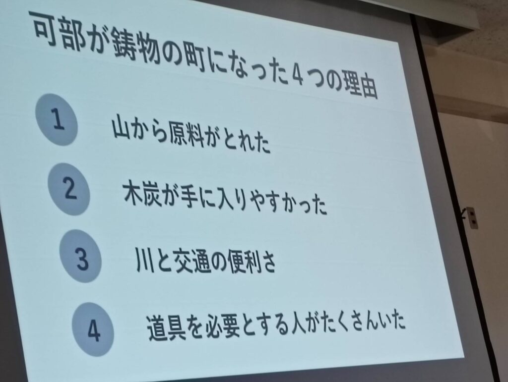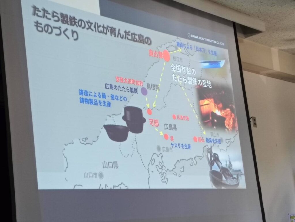 9月22日(月)、可部小6年生の「総合的な学習の時間」に地元企業「大和重工株式会社」による出前授業が行われました。はじめに可部夢街道まちづくりの会の貴船会長から挨拶があり、石川敏宏営業副本部長から、鋳物づくりの歴史、可部で鋳物産業が栄えた理由、大和重工が作っている製品などについてお話がありました。映像や実物(ホーロー浴槽のミニチュア)を準備されていて、子どもたちにとって興味深くわかりやすいお話でした。