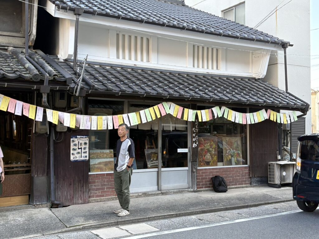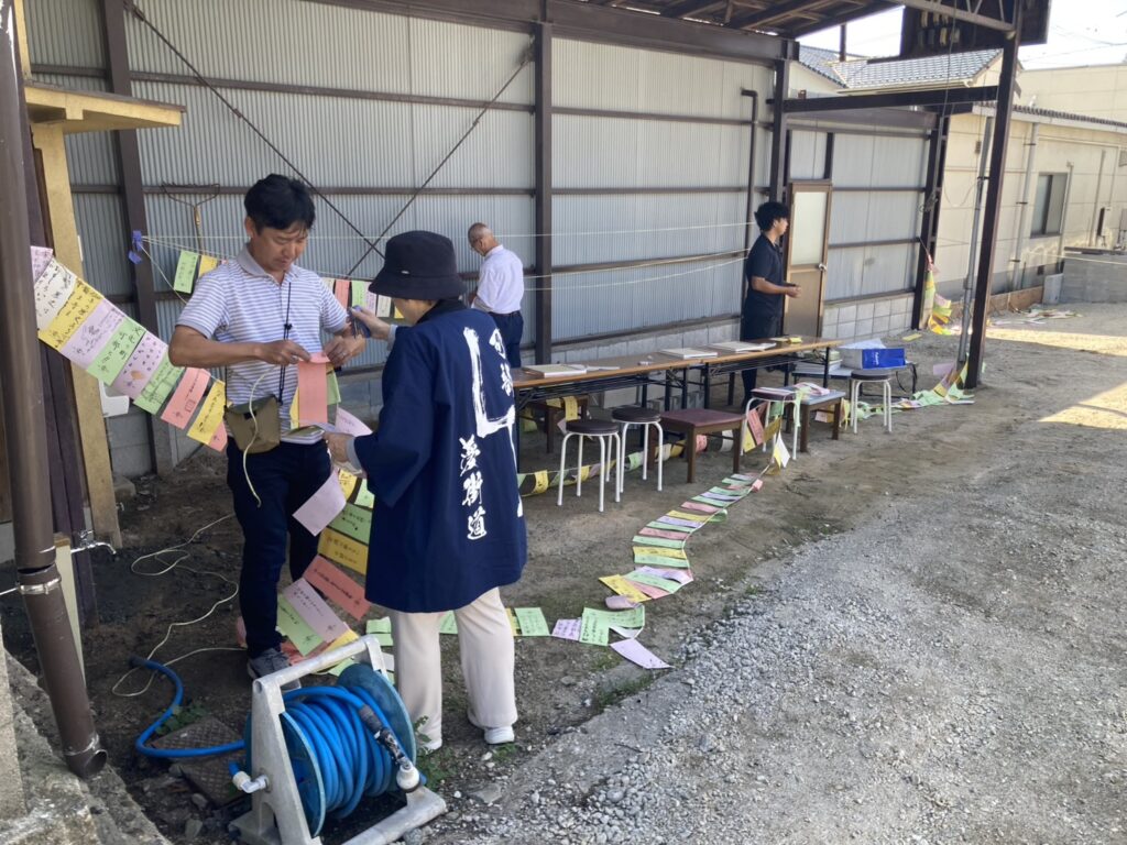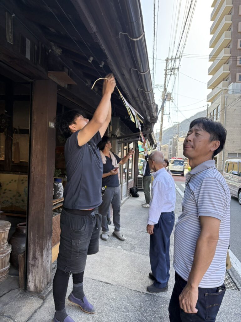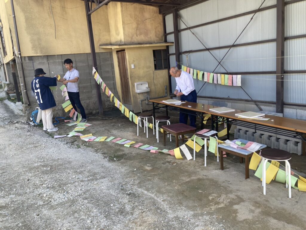 今日は、可部夢街道沿いの「きよかわの家」を中心に、たくさんの夢が飾られましたよ。可部夢街道まつりのイベントの一環です。「日本一夢が集まる街道にプロジェクト」で、小学生から大人までのたくさんの夢が書かれた短冊を実行委員会メンバーがロープにつけました。