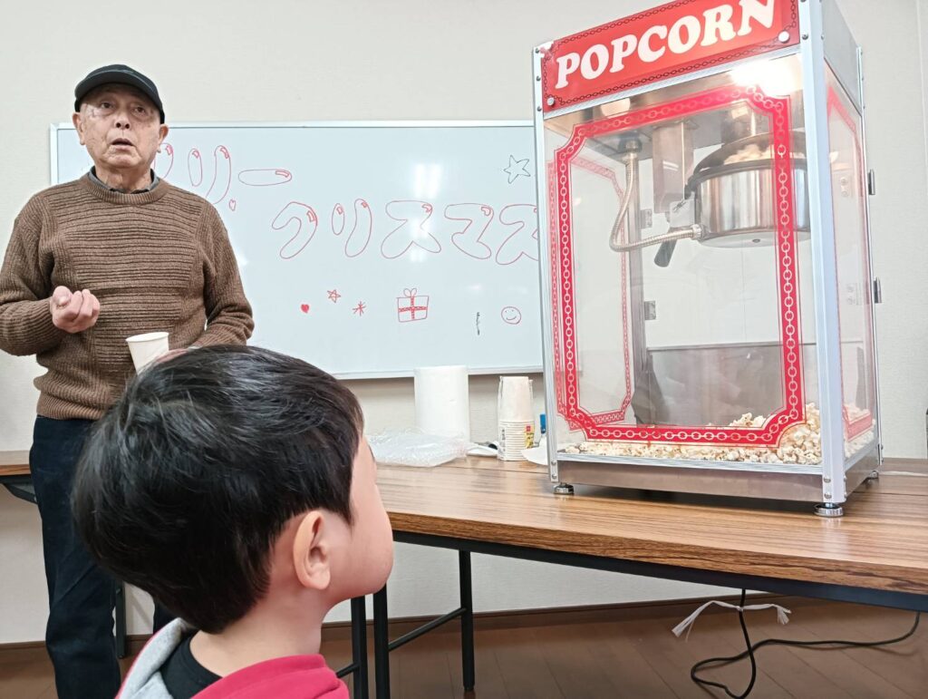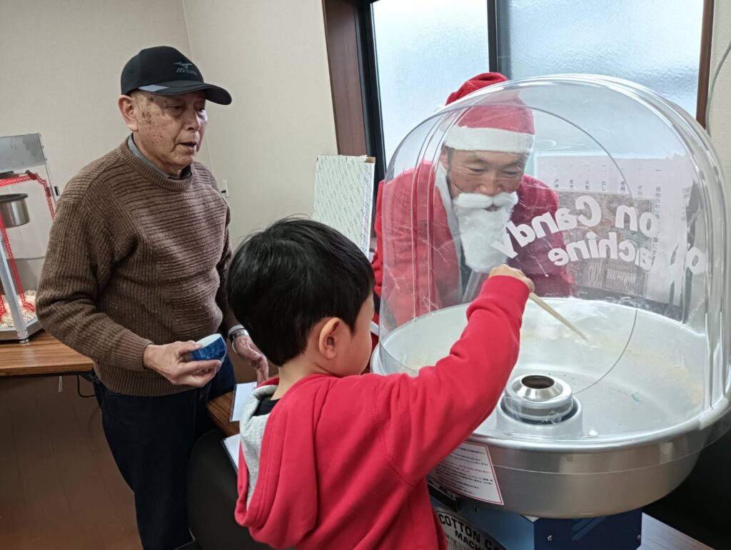 22日(日)、光善坊自治会では、はじめての試みとして、主善会館を利用して「クリスマス会」が開催されました。可部エルモの「綿菓子機」、「ポップコーン機」を活用して子どもたちが楽しいひとときを過ごしました。